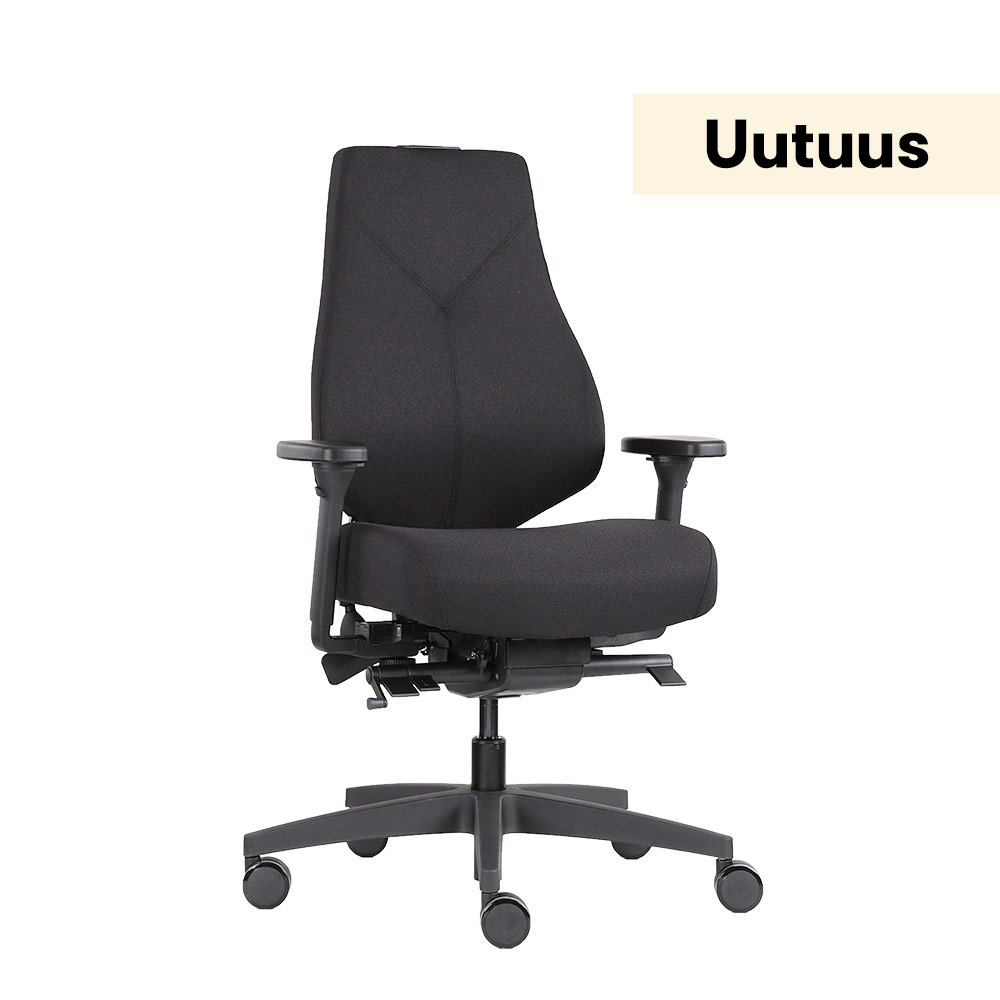 - Monipuoliset ergonomiasäädöt: Istuinkorkeus, istuimen kaltevuus ja keinun vastus säätyvät helposti työpäivän tilanteiden mukaan.